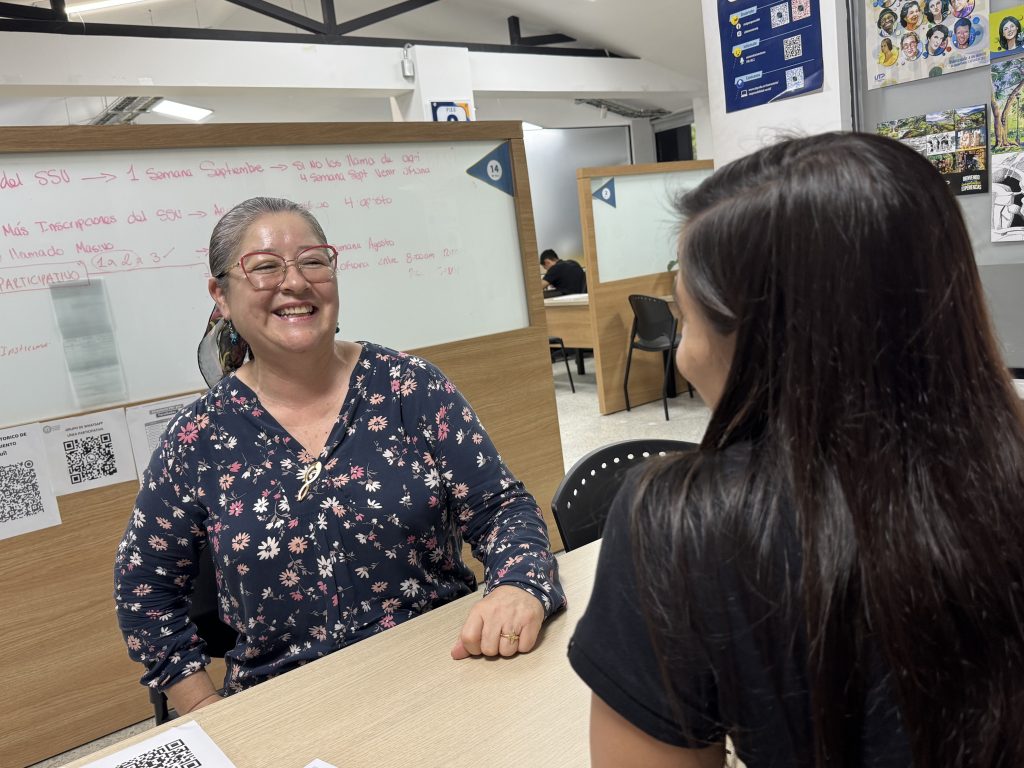 Con el tiempo, esos programas se multiplicaron. El Bono de Alimentación se amplió, nació la monitoría social, llegaron las Becas Talento con apoyo empresarial, y más tarde el Bono de Transporte. Hoy, dice con orgullo, son 254 los monitores sociales los que se mueven en espacios en los dos roles, prestando un servicio a una dependencia o como intérpretes para estudiantes con discapacidad y en los salones de clase como estudiantes, y lo mejor dice ella, manteniendo promedios altos, es decir cumpliendo el objetivo principal para el que llegaron a la Universidad”