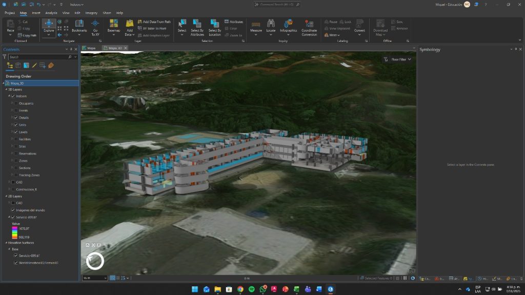 Con la implantación del sistema geográfico, la universidad ha migrado la totalidad de su información arquitectónica, topográfica y cartográfica hacia la plataforma ArcGIS Online, integrando capas temáticas y modelos espaciales en un entorno centralizado. Esta infraestructura digital no solo ofrece una interfaz moderna para la visualización y consulta, sino que habilita capacidades avanzadas de análisis, interoperabilidad entre dependencias, actualización colaborativa y trazabilidad de los datos espaciales.