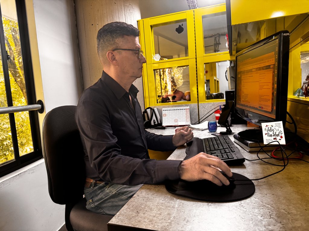 Hoy lleva 33 años como funcionario administrativo de la Universidad Tecnológica de Pereira, más un año como transitorio. Toda una vida. “La Universidad me lo ha dado todo”, dice con agradecimiento. Estudió Tecnología Industrial, después una licenciatura en áreas técnicas y más tarde una especialización en Gerencia de Tecnología. Su camino académico y laboral se trenzaron siempre en el mismo lugar: la División de Sistemas, hoy Gestión de Tecnologías Informáticas y Sistemas de Información.