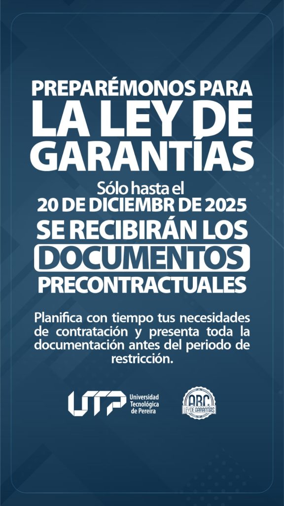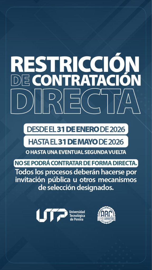 En cumplimiento de la Ley 996 de 2005 (Ley de Garantías Electorales), la Universidad Tecnológica de Pereira ha iniciado la preparación institucional para dar cumplimiento a las restricciones contractuales que regirán durante los periodos previos a las elecciones al Congreso de la República y a la Presidencia de la República en 2026. Esta normativa nacional busca garantizar la transparencia, la equidad en la contienda electoral y la neutralidad de las entidades públicas.