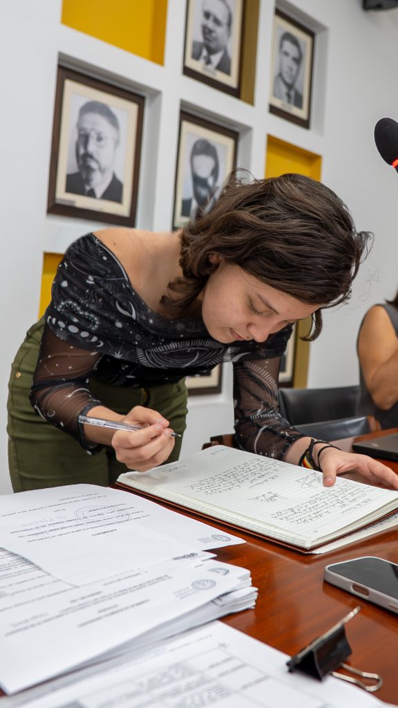 “Quisiera empezar por agradecer a todas las personas que votaron más que por un ser individual, votaron por unas propuestas y un plan de trabajo. Votaron por una representación que los va a escuchar, va a asumir el compromiso ético, una responsabilidad de articularse para la investigación, la calidad, las políticas que piensan en las mujeres, en las diversidades sexuales y en las comunidades étnicas, pues la academia debe pensarse desde las realidades sociales y los contextos”, expresó la representante Andrea luego de su posesión.