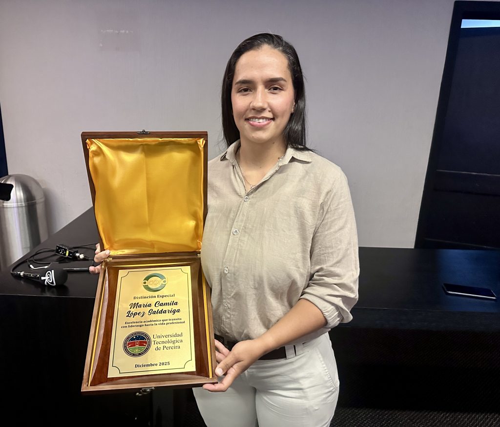 Entre los galardonados se destacó María Camila López Saldarriaga, quien realizó su práctica en la Institución Educativa Santa Isabel, en Dosquebradas, liderando actividades deportivas con niños, jóvenes y adultos mayores. Su trabajo con población adulta mayor fue especialmente valorado por su impacto comunitario. Para ella, recibir el reconocimiento del rector fue “un momento muy especial y una muestra de que el trabajo hecho con amor siempre da frutos”.