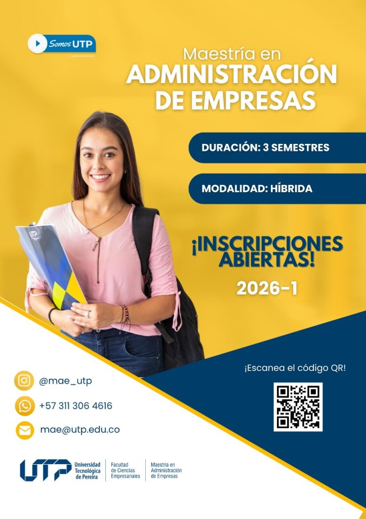 La Facultad de Ciencias Empresariales de la Universidad Tecnológica de Pereira anunció la apertura de inscripciones para la Maestría en Administración de Empresas, un programa orientado a responder a las necesidades del entorno empresarial actual mediante una formación avanzada que fortalece las capacidades de dirección, liderazgo y toma de decisiones estratégicas.