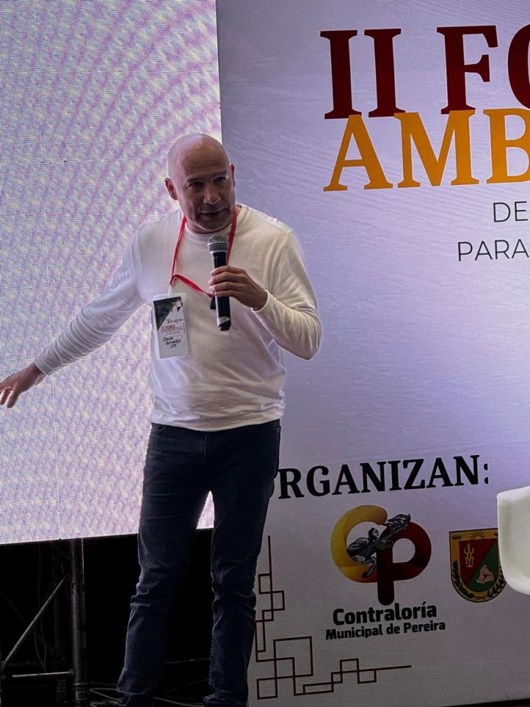 El director del Centro de Ciencia Jorge Hugo García Sierra Jardín Botánico de la UTP se encargó de la tercera reflexión, titulada “Socialización de los avances en los procesos de silvicultura urbana en Pereira 2025”