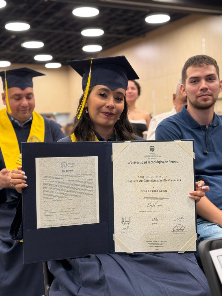 A sus 25 años, Sara Castaño Cortés, Administradora Ambiental, celebra un logro que sintetiza constancia, sacrificio y convicción personal: su graduación de la Maestría en Administración de Empresas en la Universidad Tecnológica de Pereira, cursada gracias a la Beca Jorge Roa Martínez, uno de los reconocimientos académicos más significativos de la institución.