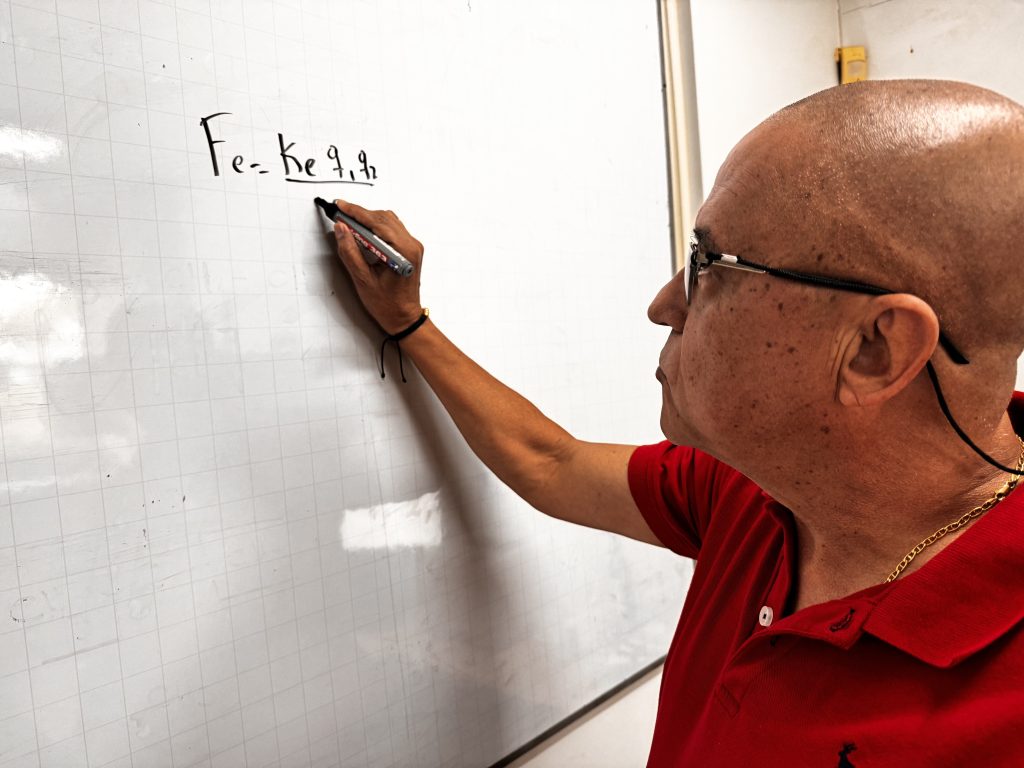 En el aula, Hoover se define como cercano y exigente a la vez. Su sello es llevar la física a la vida cotidiana. No empieza con fórmulas, sino con ejemplos: cepillarse los dientes, patear un balón, lavar los platos. “La física se vive, se siente, se mueve con uno”, explica.