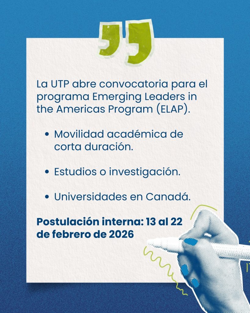 La Oficina de Relaciones Internacionales de la Universidad Tecnológica de Pereira abrió una convocatoria interna para postularse a las Becas ELAP 2026–2027, programa del Gobierno de Canadá que financia movilidades académicas de corta duración en universidades canadienses. Las postulaciones estarán abiertas del 13 al 22 de febrero de 2026.