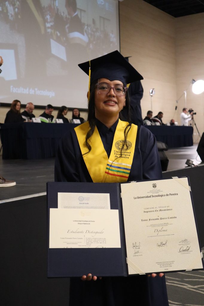 Lo que comenzó como un sueño que parecía inalcanzable, se materializó hoy en el auditorio de la Universidad Tecnológica de Pereira. Luisa Fernanda Parra Castaño recibió oficialmente sus títulos en Tecnología en Mecatrónica e Ingeniería Mecatrónica, culminando un proceso académico marcado por la disciplina y la superación de retos técnicos.