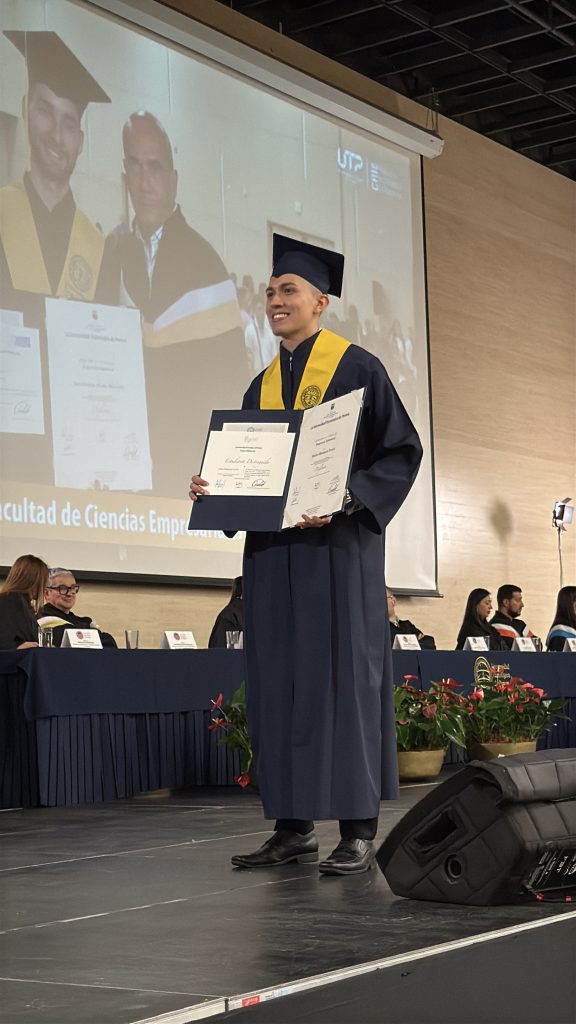 A sus 21 años, Julián Mosquera Loaiza recibe hoy su título como Ingeniero Industrial de la Facultad de Ciencias Empresariales de la Universidad Tecnológica de Pereira como estudiante distinguido con un promedio de 4,3. Su historia es la de un joven pereirano que encontró en la UTP no solo una formación académica de alto nivel, sino también el escenario para construir liderazgo, amistades y un proyecto de vida con impacto regional y proyección internacional.