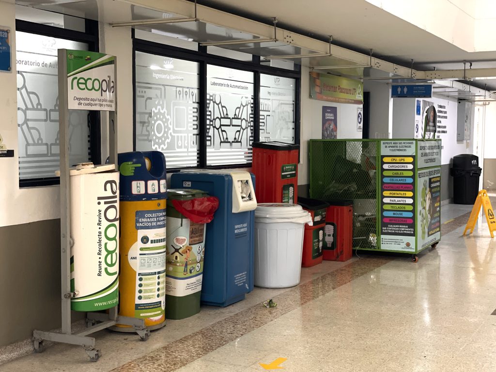 Para facilitar esta práctica, la institución cuenta con dos módulos posconsumo permanentes dentro del campus. El primero está ubicado en el edificio 1A, bloque B, considerado uno de los puntos más completos del departamento de Risaralda, con ocho contenedores destinados a aceites usados de cocina, residuos de aparatos eléctricos y electrónicos (RAEE), pilas, medicamentos humanos y veterinarios vencidos, luminarias, insecticidas domésticos y ecobotellas. El segundo se encuentra en el hall principal del edificio 13, con los mismos contenedores, excepto el destinado a RAEE.