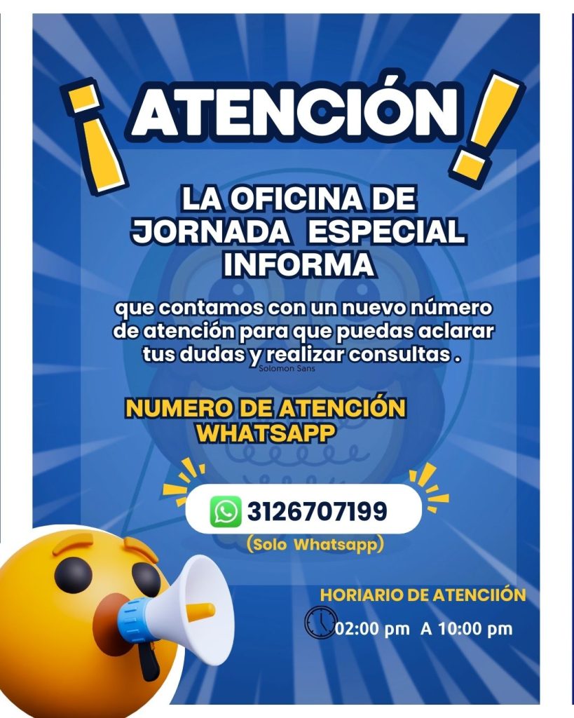 La Oficina de Jornada Especial informa que cuenta con un nuevo número de atención por WhatsApp para estudiantes. Allí se podrían realizar consultas y aclarar cualquier duda.