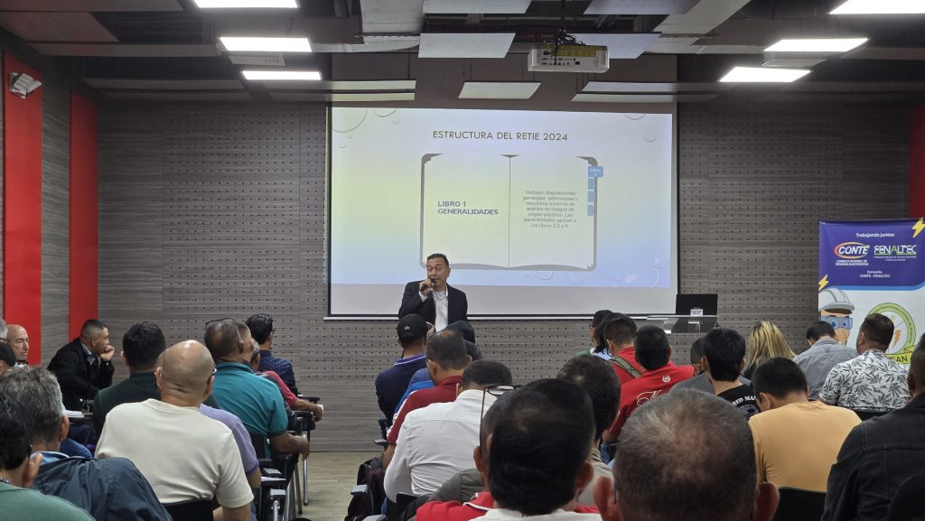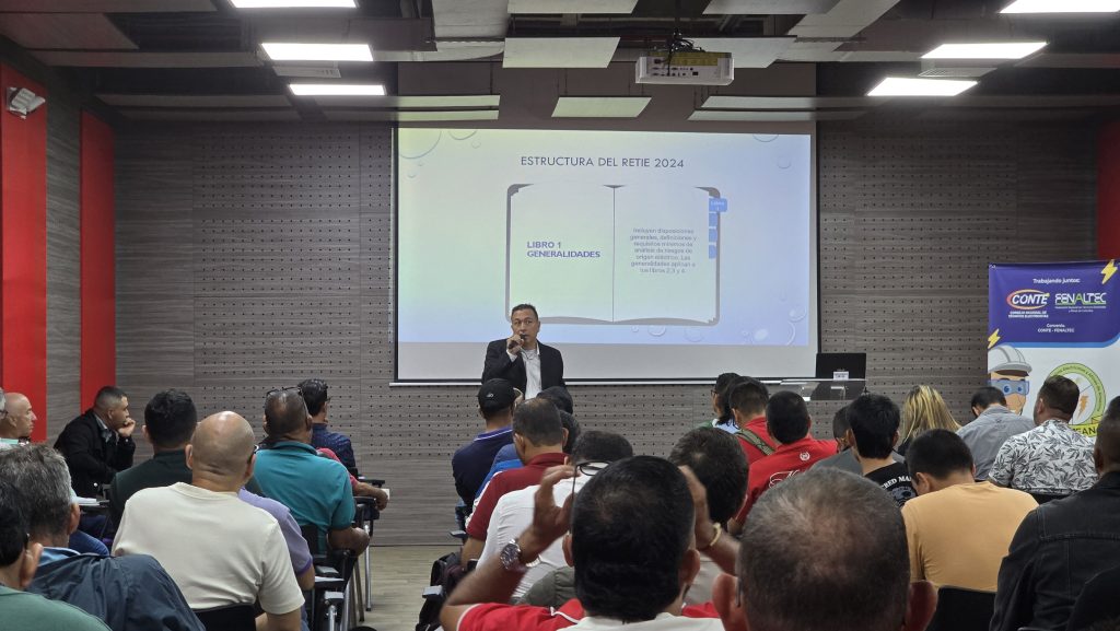 Bajo el liderazgo de Educación Continua de la Facultad de Ingenierías, se llevó a cabo un encuentro de actualización sobre el Reglamento Técnico de Instalaciones Eléctricas (RETIE) 2024, contando con la participación estratégica del Consejo Nacional de Técnicos Electricistas (CONTE).