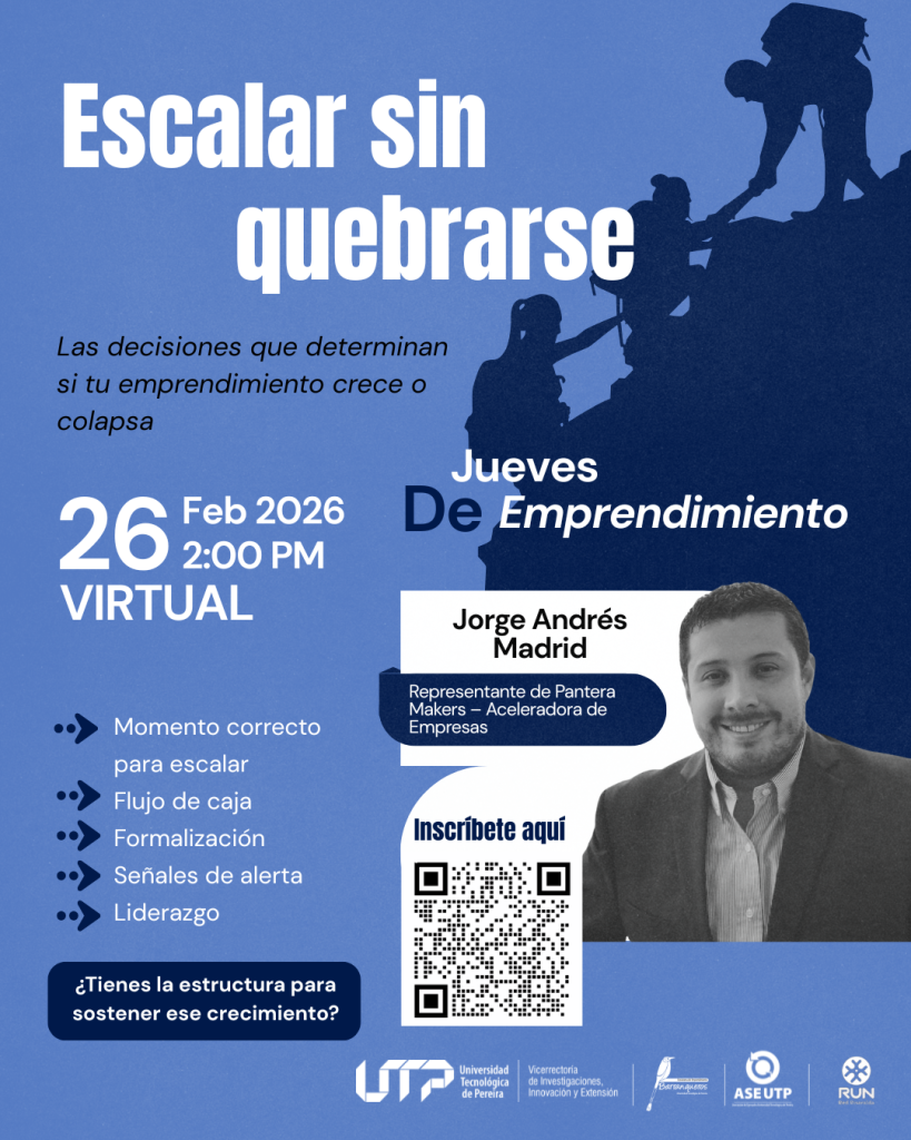 Lo invitamos a la conferencia: “Escalar sin quebrarse: las decisiones que determinan si tu emprendimiento crece o colapsa” con Jorge Madrid, representante de Pantera Makers – aceleradora de empresas.
