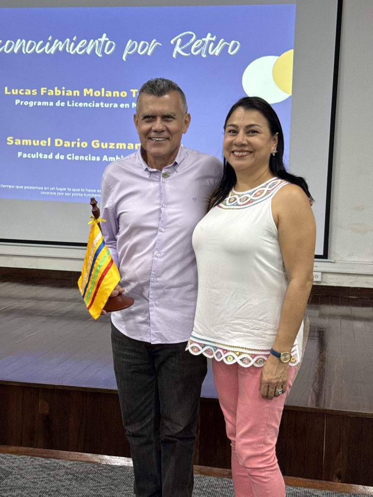 Por su parte, Samuel Darío Guzmán desarrolló una trayectoria de 26 años en la Facultad de Ciencias Ambientales. Economista, especialista en Pedagogía y Desarrollo Humano, magíster en Estudios Ambientales y doctor en Ciencias Ambientales, se desempeñó como docente titular, decano de facultad, director de departamento y líder de grupos de investigación, además de integrar diversos comités institucionales. Su aporte académico y directivo contribuyó de manera significativa al fortalecimiento de la facultad y de la universidad.