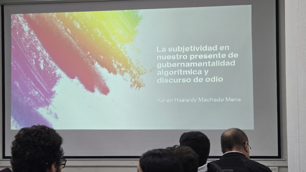 Bajo el título de su investigación doctoral, la ponente desglosó la configuración de subjetividades en nuestro presente de discurso de odio, especialmente en las redes sociales, analizándolo desde una perspectiva analítica y crítica. Para Machado Mena, el odio en el entorno digital no es un evento aislado, sino una estructura compleja que conforma sujetos. Justo por eso considera al odio una emoción política.