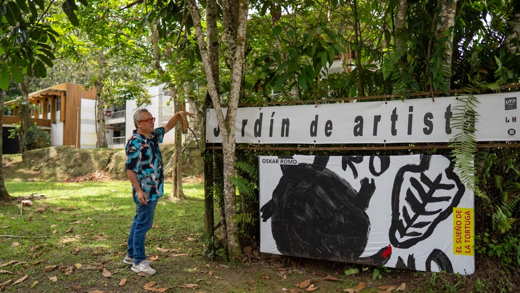 Lo que hoy es un frondoso cerramiento natural con árboles que alcanzan los 15 metros de altura, comenzó en 2007 como una barricada de sacos de tierra. El «Jardín de Artista», un proyecto liderado por el profesor Óscar Salamanca.