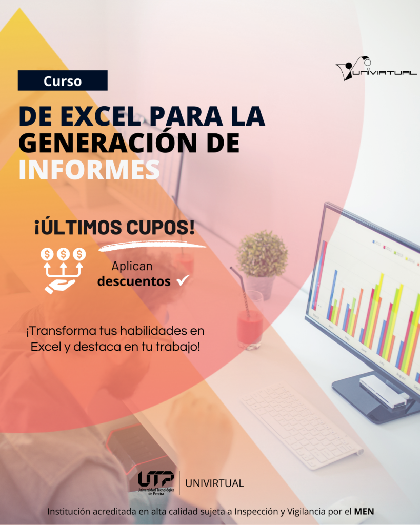 La Universidad Tecnológica de Pereira a través de Univirtual recuerda a la comunidad interesada que el curso “Excel básico para la generación de informes” se encuentra en su etapa final de matrícula, con los últimos días y cupos disponibles para quienes desean fortalecer sus habilidades en el manejo y análisis de datos.