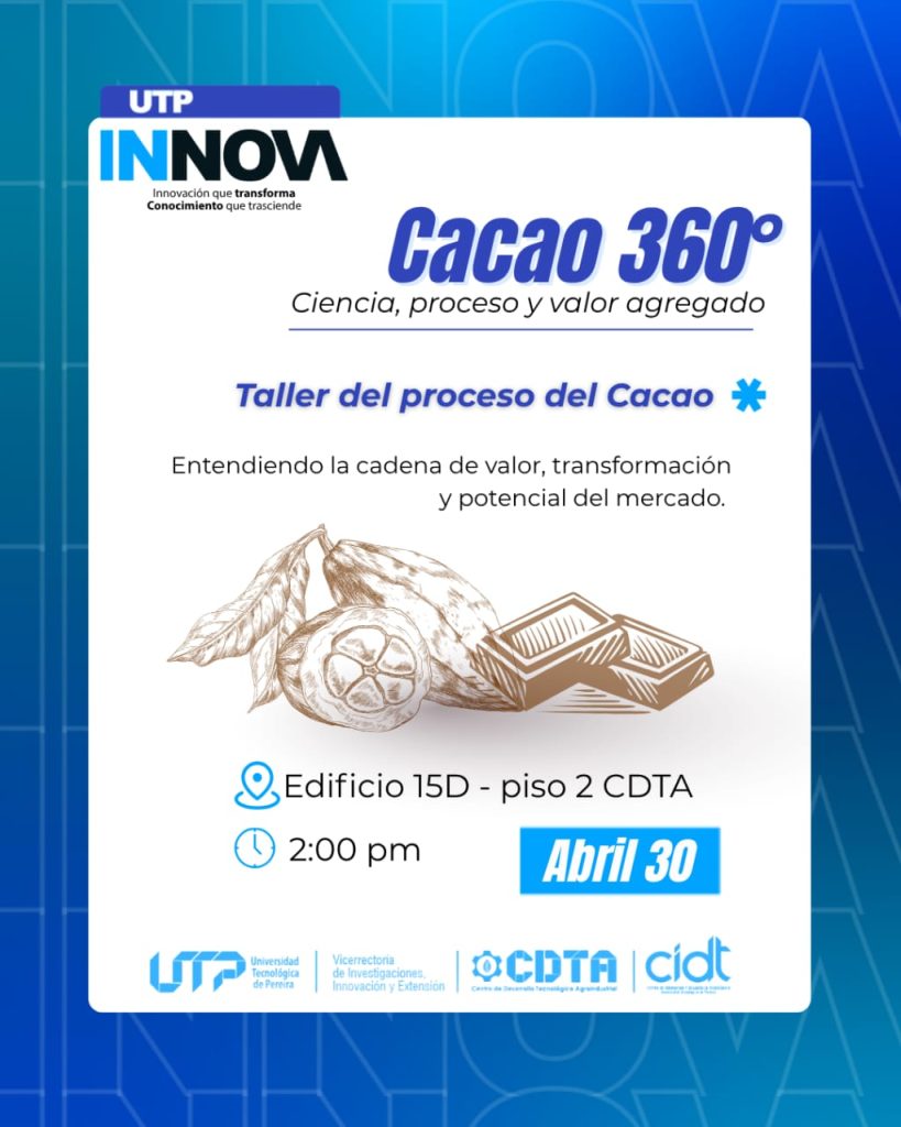 De manera paralela, en el CIDT, se realizará la socialización de los Retos de Innovación, incluyendo la presentación de resultados y muestra tecnológica. En la jornada de la tarde, el Centro de Desarrollo Tecnológico Agroindustrial será escenario del taller “Cacao 360”, una experiencia práctica para conocer la cadena de valor del cacao y su potencial en el mercado.