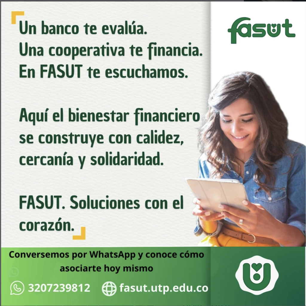 A esto se suma la Cooperativa FAVI UTP, una alternativa que va más allá del crédito tradicional. Ser asociado abre la puerta a beneficios financieros pensados especialmente para la comunidad universitaria, permitiendo que el pago de la matrícula se realice directamente a la institución. Esta opción no solo financia estudios, sino que fortalece una red de apoyo solidaria entre profesionales que creen en el poder de la educación.