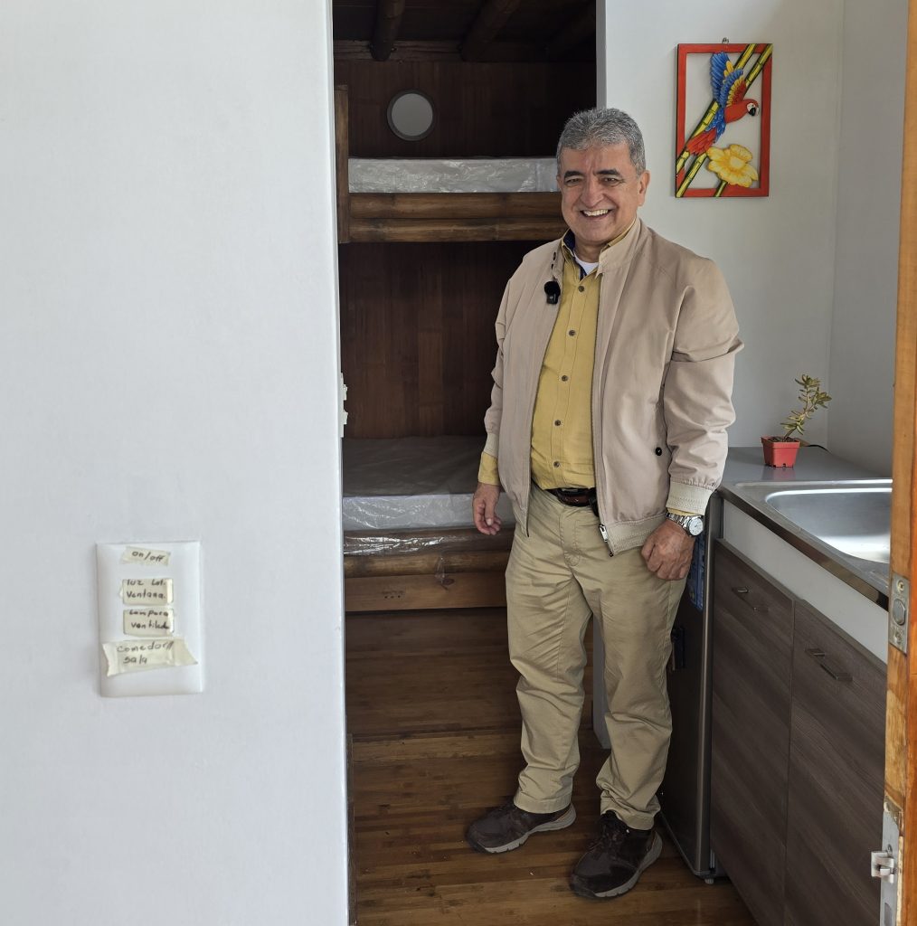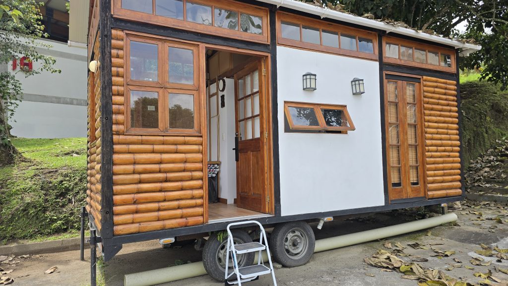 «Hacer una casa desmontable en guadua es muy complejo por el desgaste de las estructuras. Por eso propuse una ‘Tiny House’, un concepto que es tendencia en Europa y Estados Unidos, donde los jóvenes buscan libertad, ahorro de impuestos y movilidad», explica el Decano Montoya.