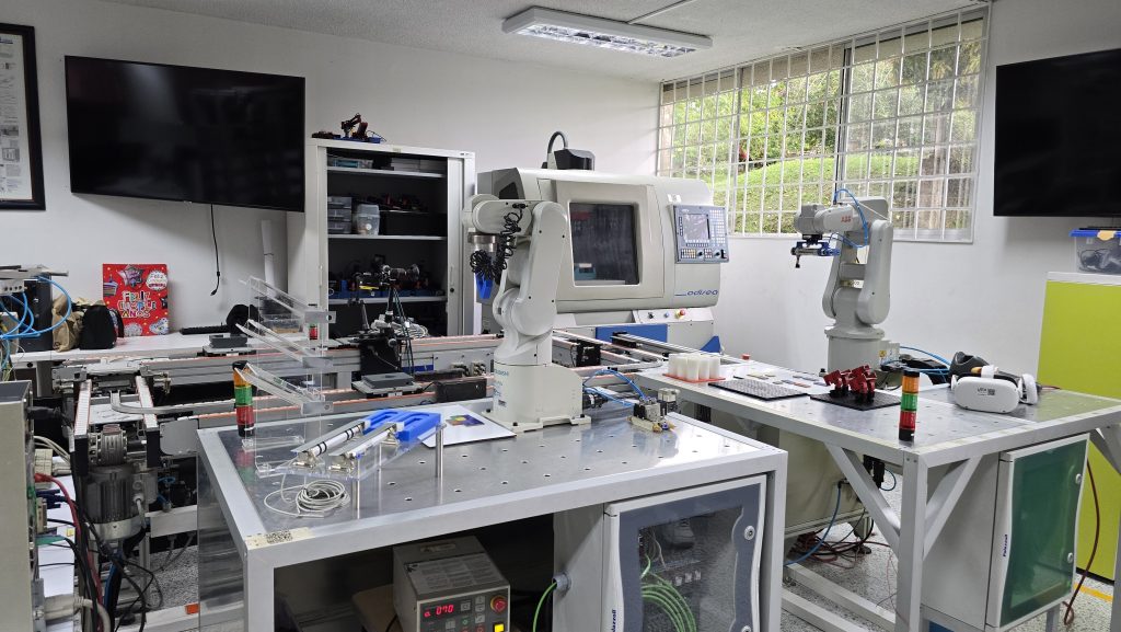 La evolución del laboratorio ha sido constante. Muñoz recuerda que a su llegada contaban con un robot Mitsubishi de 2003, funcional pero con un enfoque puramente académico. Luego de unos años y teniendo en cuenta las observaciones de los pares de EUROACE, la universidad y la facultad realizaron una apuesta económica ambiciosa para dotar el espacio con tecnología de punta.