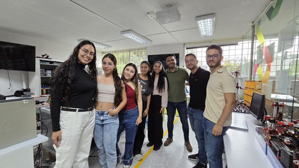 Más allá de las máquinas y el software, el corazón del laboratorio son sus estudiantes. Actualmente, el semillero de investigación cuenta con 12 integrantes activos, sumados a un grupo élite de 5 estudiantes vinculados a proyectos de investigación de alto impacto, muchos de ellos alineados con la formación doctoral del profesor Muñoz en robótica y programación de operaciones.