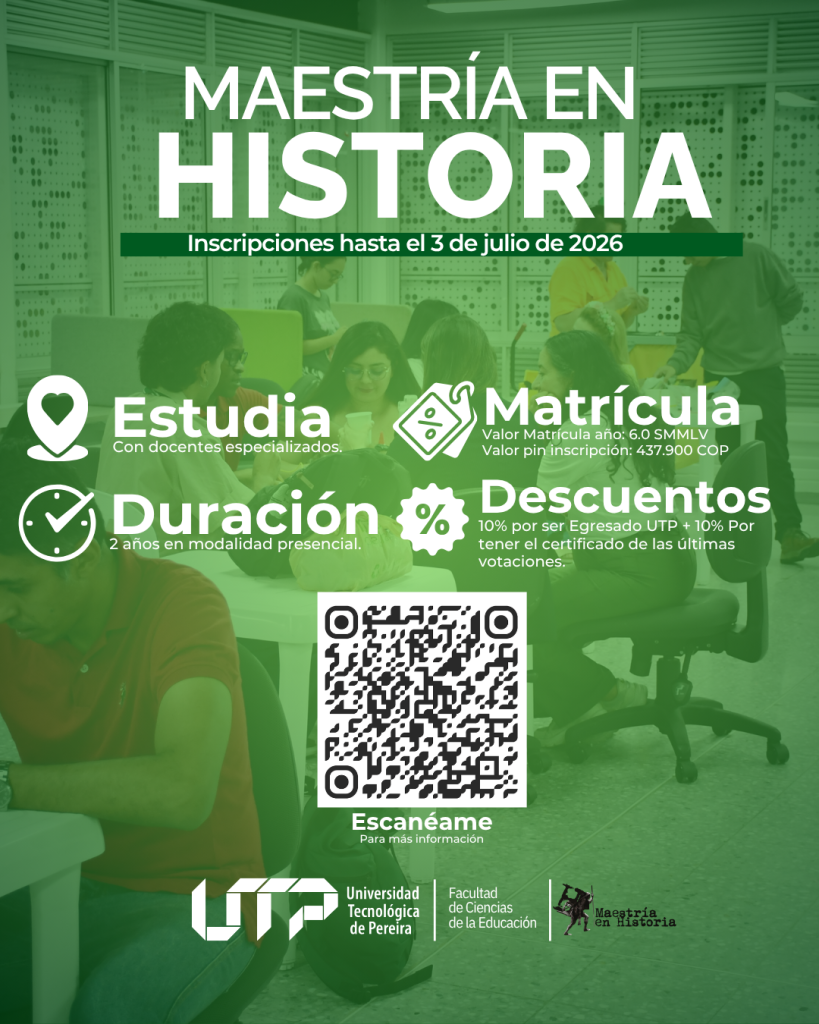 La Maestría en Historia de la Universidad Tecnológica de Pereira es tu oportunidad para fortalecer el pensamiento crítico, la investigación y el análisis de contextos históricos y educativos.