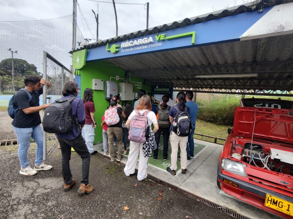 Ubicada frente al Auditorio Jorge Roa Martínez, esta estación de carga gratuita para vehículos eléctricos e híbridos funciona con energía fotovoltaica. Su sistema de carga rápida (1 hora) y convencional (4 horas) permite además devolver excedentes de energía a la red, convirtiéndose en un laboratorio vivo para la investigación en energías renovables.
