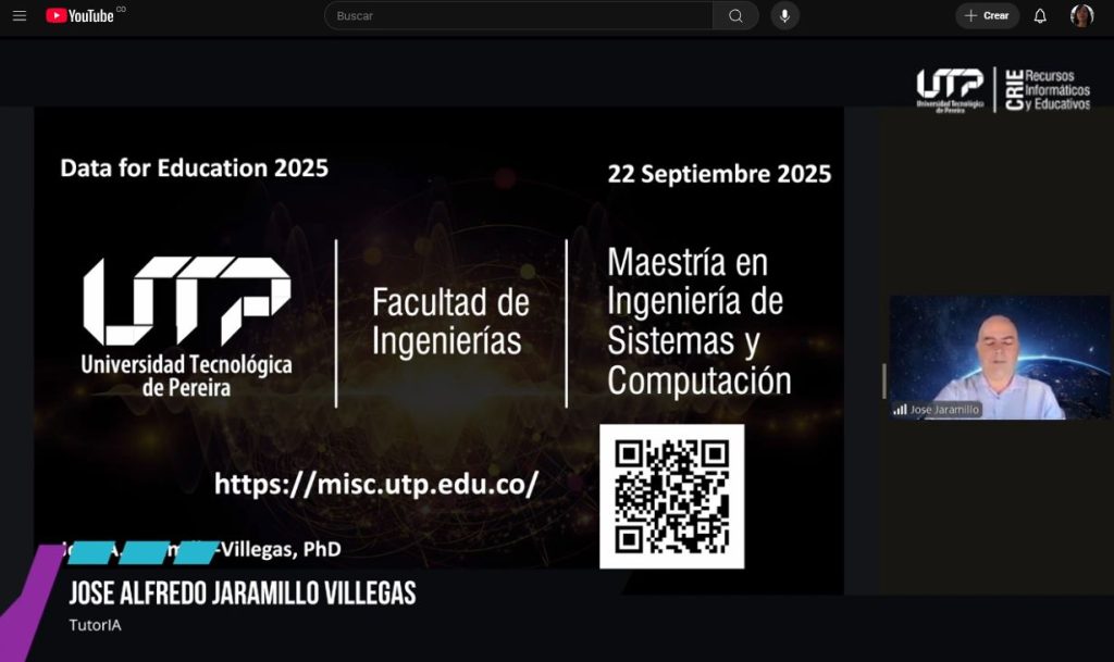 La Universidad Tecnológica de Pereira vivió este 22 de septiembre un evento que dejó huella: el segundo simposio Data for Education. Un encuentro virtual que reunió a más de 120 participantes conectados por Zoom y YouTube, interesados en descubrir cómo la analítica de datos y la inteligencia artificial están transformando la educación superior.