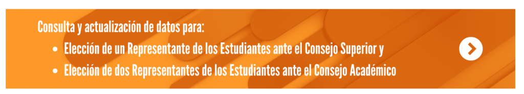 El proceso de consulta y actualización de datos para la conformación del censo electoral, es fundamental para cumplir con la doble validación que será requerida al momento de votar para las elecciones por parte de los Estudiantes con el fin de elegir sus representantes según corresponda ante el Consejo Superior Universitario y el Consejo Académico el día 13 DE NOVIEMBRE DE 2025.