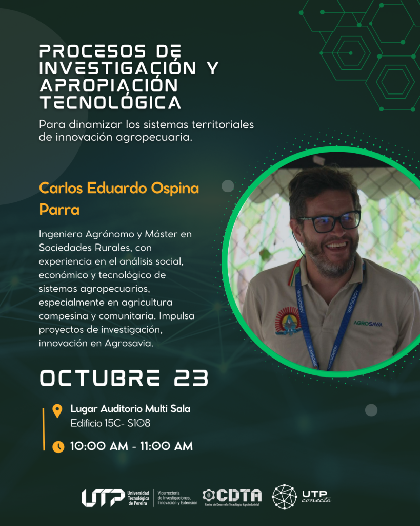 Conferencia 2: Transferencia y apropiación tecnológica para dinamizar los sistemas territoriales de innovación agropecuaria con Agrosavia.