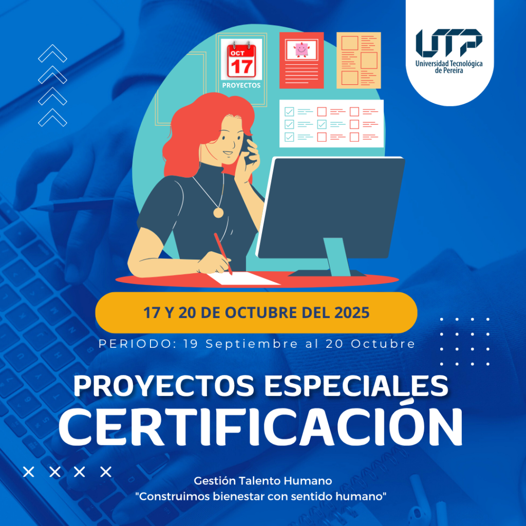 El proceso de Administración de la Compensación recuerda que los días VIERNES 17 y LUNES 20 de octubre del 2025, son las fechas asignadas para realizar la Certificación y Aprobación de docentes, administrativos y monitores de Proyectos Especiales (Acuerdo 21) – Periodo a certificar desde el 19 de septiembre hasta el 20 de octubre del 2025 según su correcta ejecución.