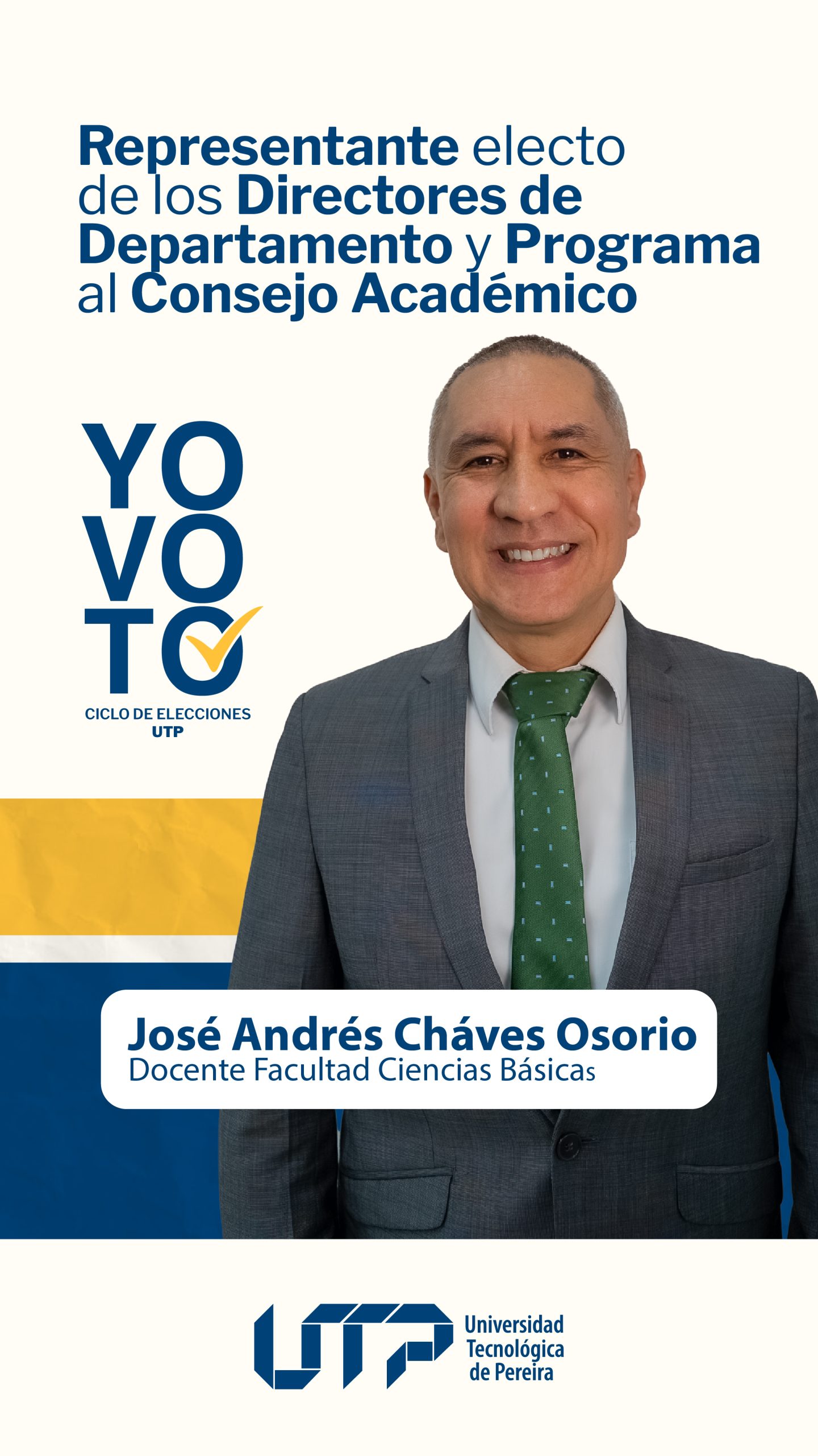 Con un total de 38 votos, el profesor José Andrés Chaves Osorio fue elegido como nuevo representante de las directivas académicas ante el Consejo Académico de la Universidad Tecnológica de Pereira, para el periodo institucional correspondiente.