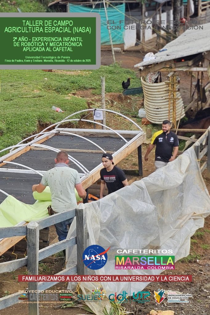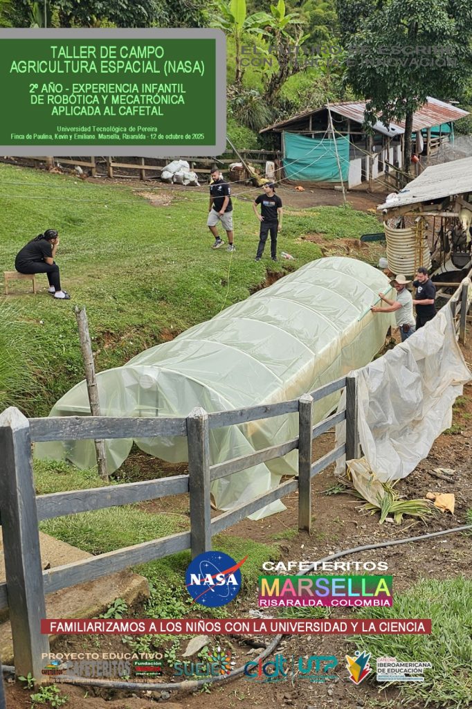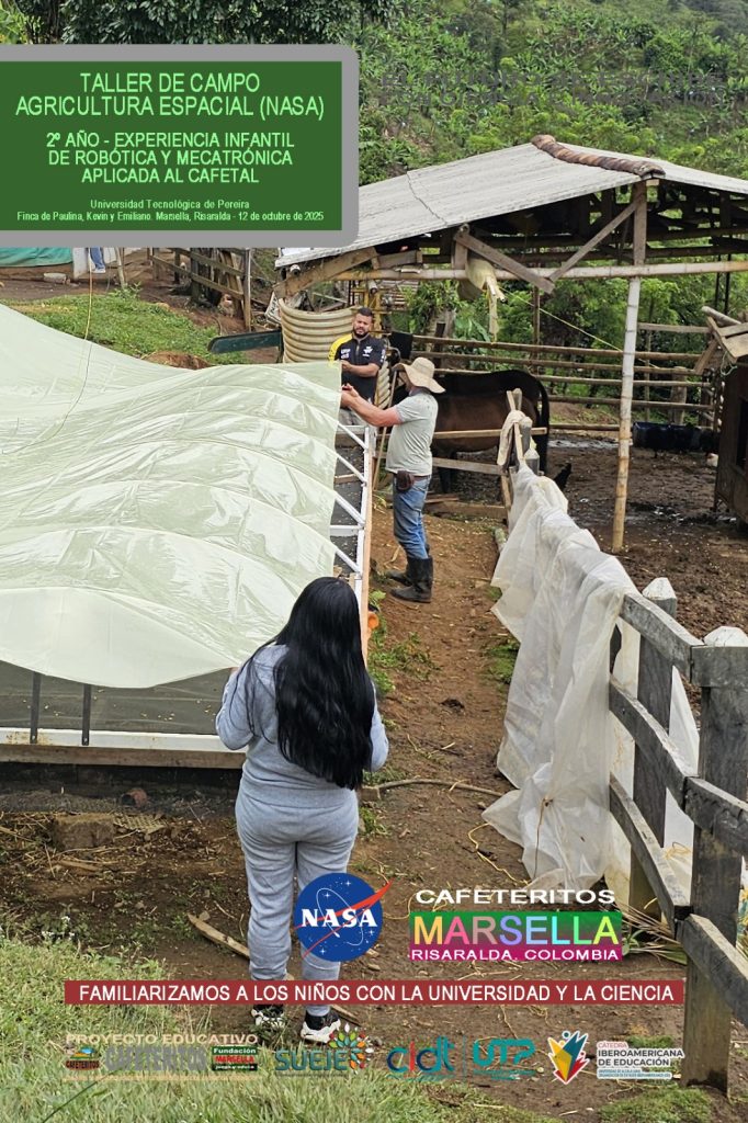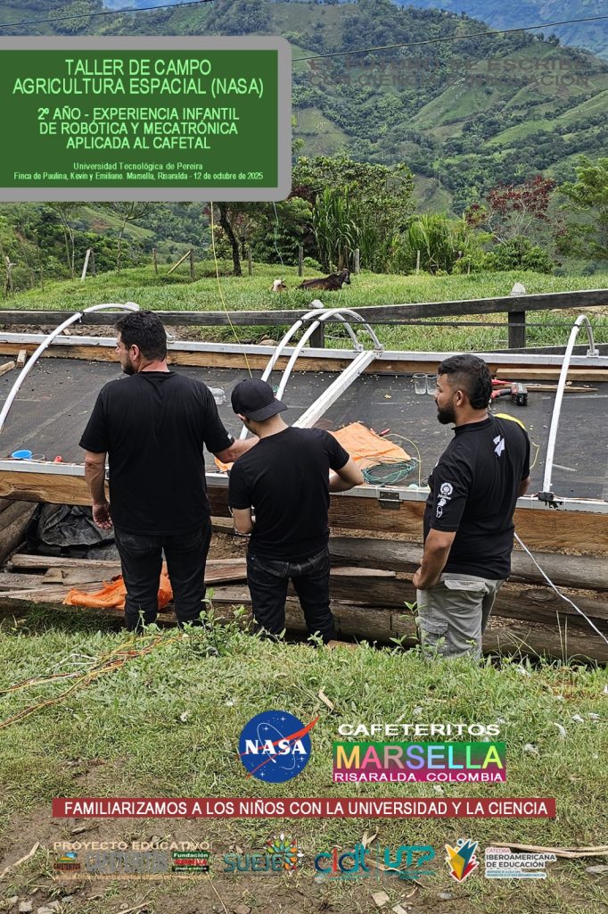 El pasado domingo 12 de octubre, se realizó el segundo Taller de Campo de Agricultura Espacial (NASA) 2025, una significativa jornada de aprendizaje comunitario en el municipio de Marsella, Risaralda, como parte de las Jornadas Infantiles de Robótica y Mecatrónica Aplicada al Cafetal, desarrolladas y apoyadas por el CIDT y SUEJE.
