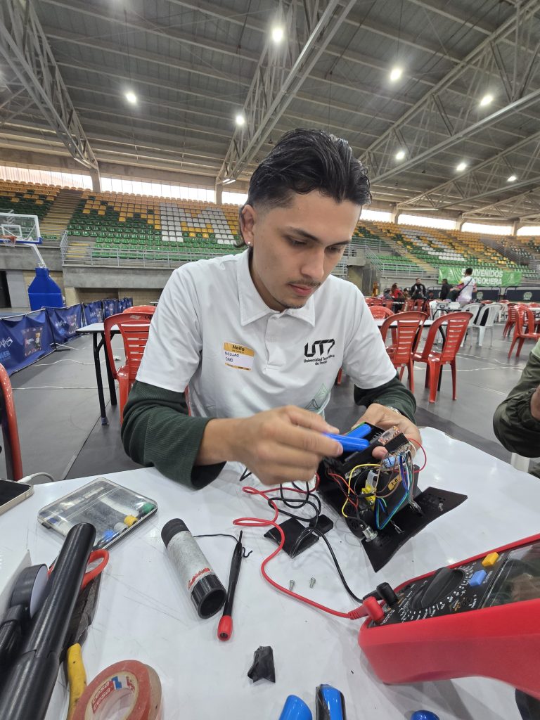 Los estudiantes Nicolás Cano González y Edgar Mayorga, del programa de Ingeniería de Manufactura de la Facultad de Tecnología, participaron en el evento Bot Rush, realizado en la ciudad de Bogotá, donde representaron a la Universidad Tecnológica de Pereira con un proyecto de robótica que destacó por su diseño, innovación y trabajo en equipo.