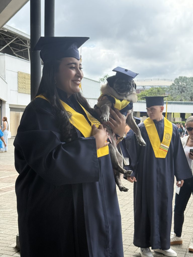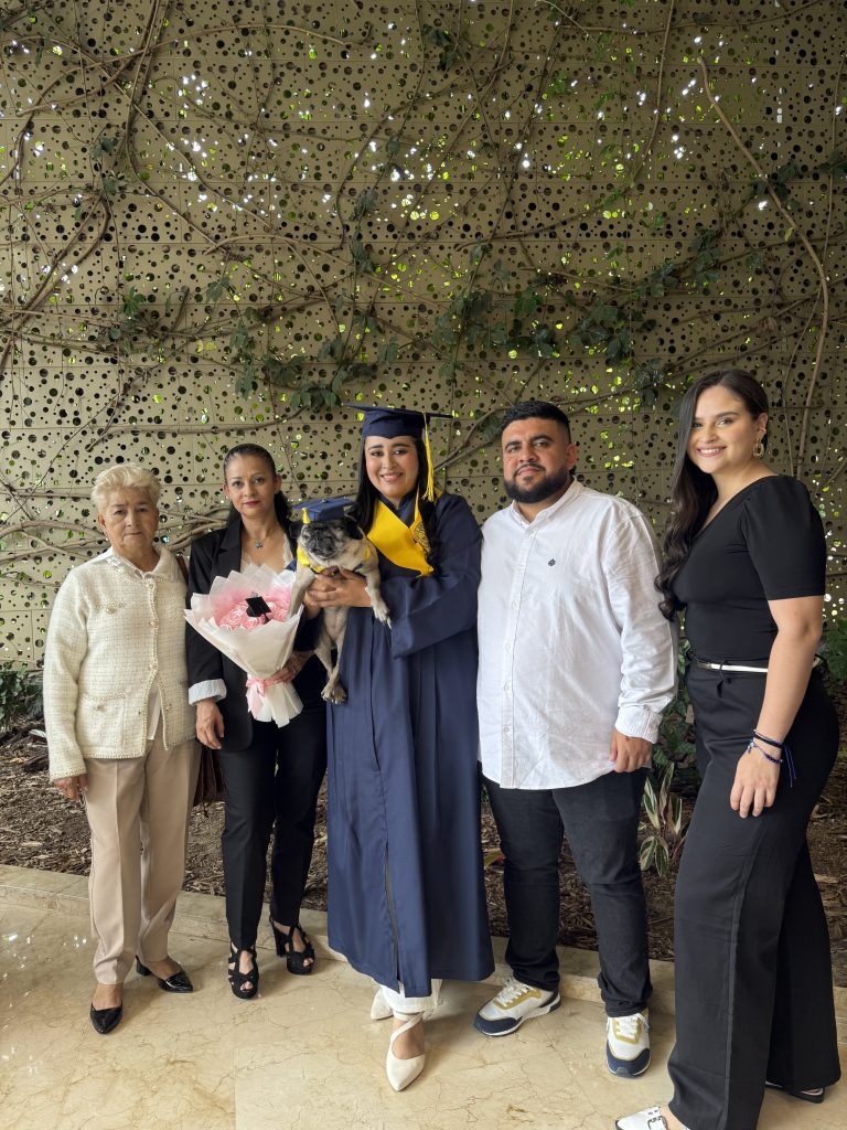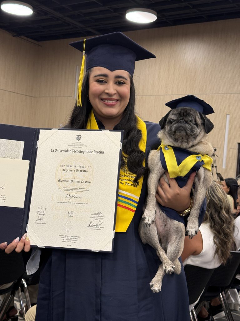 Al llegar a Pereira, la acompañó una nueva amiga y compañera incondicional: Pachanga, una perrita que adoptó al poco tiempo de establecerse en la ciudad. Juntas compartieron los retos, alegrías y aprendizajes de estos cinco años de formación universitaria. “Pachanga ha sido mi familia aquí. Ella ha estado conmigo en cada entrega, cada desvelo y cada logro” cuenta con emoción.