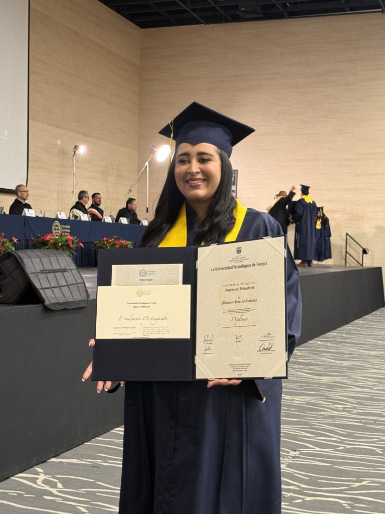 Hoy, al recibir su título profesional, Mariana mira hacia atrás con gratitud y orgullo. Reconoce que su paso por la Universidad Tecnológica de Pereira le brindó no solo una formación sólida, sino también un hogar, una comunidad y una visión de futuro. “Ser parte de la UTP fue una experiencia que me cambió la vida. Aquí aprendí que los sueños se construyen con esfuerzo, disciplina y pasión. Me voy feliz de haber crecido en un entorno que cree en el talento y las oportunidades”.