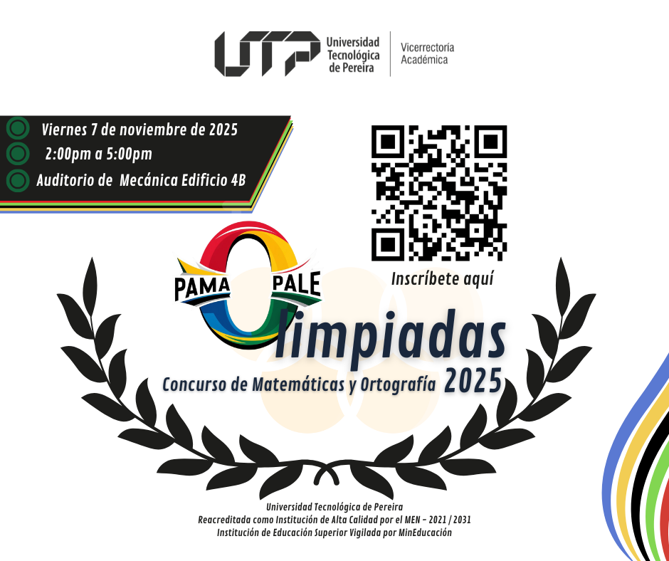 La Universidad Tecnológica de Pereira, a través de la Vicerrectoría Académica, invita a toda la comunidad universitaria a participar en la II versión de las Olimpiadas de Matemáticas y Ortografía PAMA-PALE 2025, un evento que busca fortalecer las competencias académicas y fomentar el aprendizaje significativo.