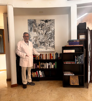 Llegó a la UTP como docente después de una desprevenida charla con el entonces decano de la Facultad de Medicina. Ya tenía su primera maestría y fue uno de los profesores que formaron la primera promoción de médicos de la institución. Su casa está forrada en libros, son más de 7 mil catalogados y una mínima cantidad se refieren a la medicina. Su vida ha sido la psiquiatría y su pasión la literatura.