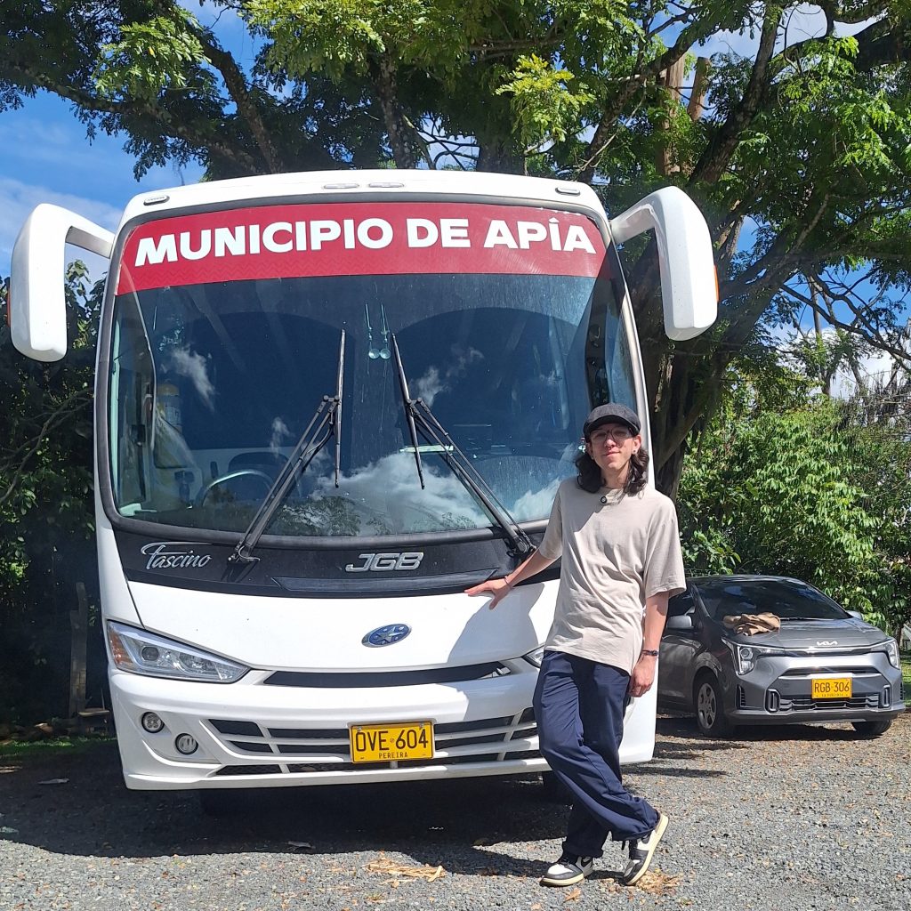 Camilo recuerda con claridad cómo era el primer bus que los transportaba hasta Pereira: “Era una buseta vieja, tenía sus fallas, pero nos servía mucho”. Con el tiempo, ese medio de transporte mejoró gracias al trabajo conjunto del municipio y la comunidad estudiantil. “A través del presupuesto participativo logramos gestionar recursos. El proyecto quedó de segundo y por eso nos dieron la mitad del dinero; la Gobernación aportó lo demás y así se pudo renovar la buseta”, cuenta.