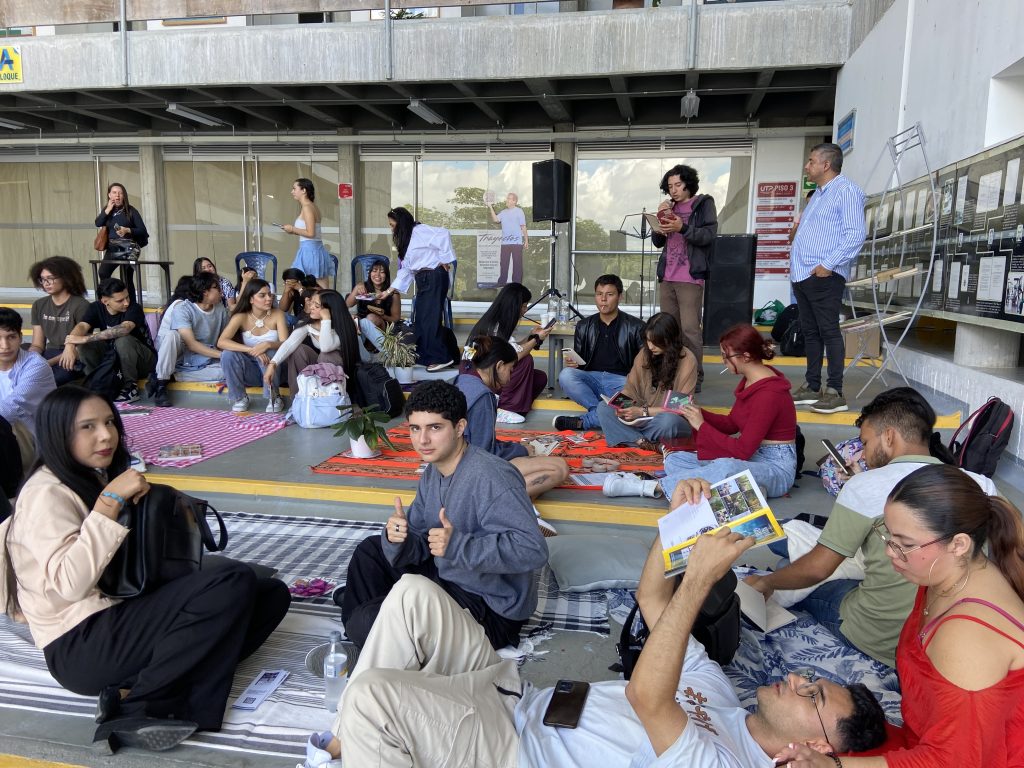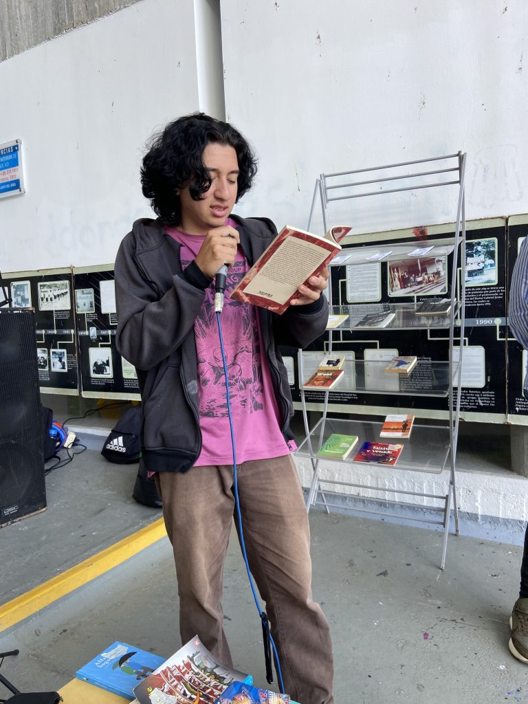 En este espacio, estudiantes y docentes compartieron textos literarios y creaciones propias, entre ellos fragmentos de autores como Julio Cortázar, en un ambiente de diálogo y participación. El lugar contó con una colección de libros, revistas y materiales donados por el Banco de la República, disponibles para la lectura y el préstamo gratuito a los asistentes, con el fin de fortalecer el acceso a la literatura y el hábito de la lectura dentro del campus.