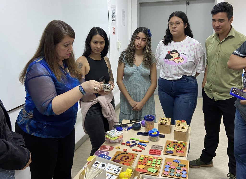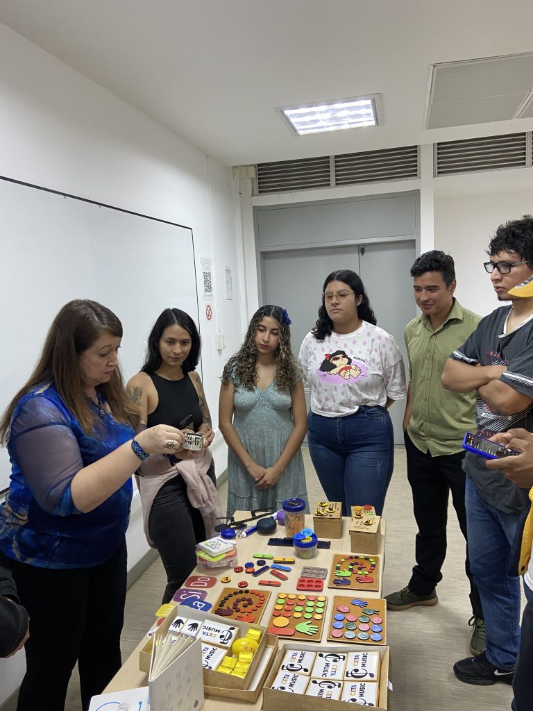 Entre estas actividades está el taller “Sonidos de Música”, liderado por la docente María Cecilia Tamayo, de la Licenciatura en Artes Visuales, un espacio diseñado para que los estudiantes exploraran diferentes herramientas y estrategias pedagógicas aplicables en el aula. A través de la experimentación con los sonidos cotidianos y de la naturaleza, los participantes crearon materiales basados en sus propias vivencias, fortaleciendo sus habilidades para el trabajo pedagógico y metodológico. Este taller estuvo dirigido no solo a estudiantes de la Licenciatura en Artes Visuales, sino también de la Licenciatura en Música y demás programas de la Facultad, fomentando la interdisciplinariedad y la creatividad como ejes del aprendizaje artístico.