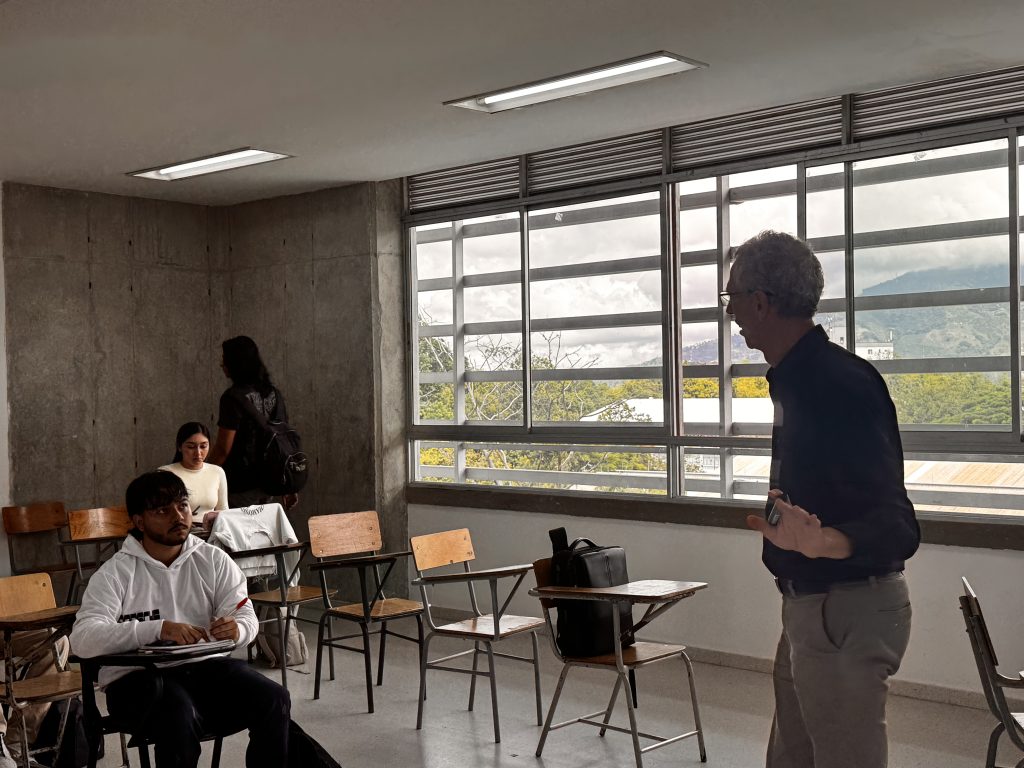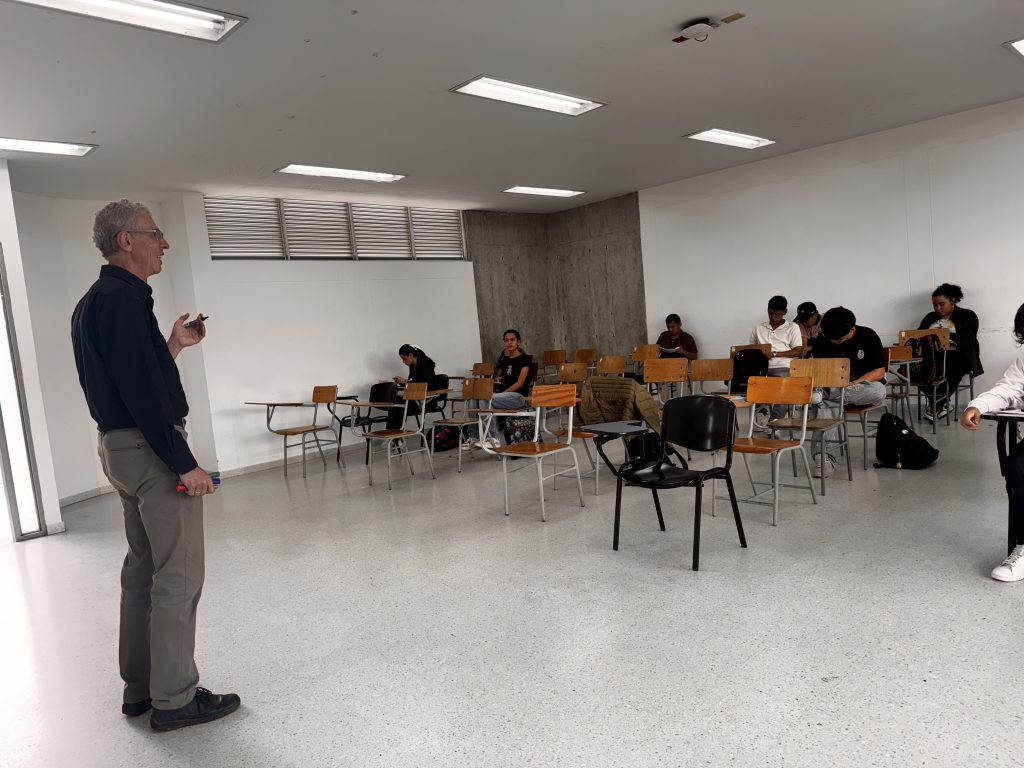 Tiene fama de exigente, pero más que severo es coherente. “Si usted viene y presenta un examen que merece 0.8, yo le pongo 0.8”, afirma. No hay concesiones, pero sí respeto por el esfuerzo honesto. “La evaluación tiene que ser justa y no puede ser sorpresa.” Aunque su clase tiene rigor, no es solemne: usa una pelotica de tenis para mantener despiertos a los distraídos, corre, salta, hace reír. La pedagogía, en su versión, tiene algo de juego, de ritmo y de humor.