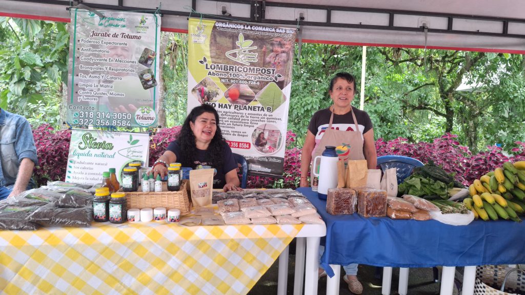 Ese sentido de pertenencia fue compartido también por productores que llegaron desde distintas regiones del país. Desde Ibagué, Margarita Rosa Enciso, de Orgánicos La Comarca, participó junto a su esposo presentando productos como jarabe de totumo, estevia líquida y pomadas elaboradas con plantas medicinales de su finca. “Somos apasionados por cuidar el planeta. Traemos productos que nacen del amor por la tierra. Gracias a la universidad, por acogernos, por abrirnos este espacio tan bonito”, expresó Margarita, destacando la oportunidad que estos encuentros representan para los pequeños emprendimientos campesinos.