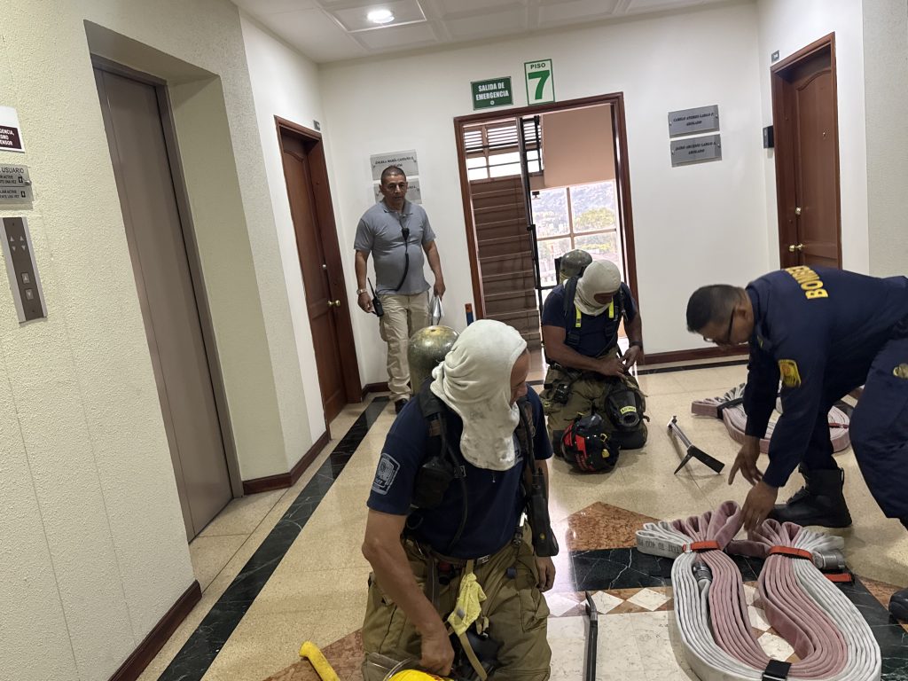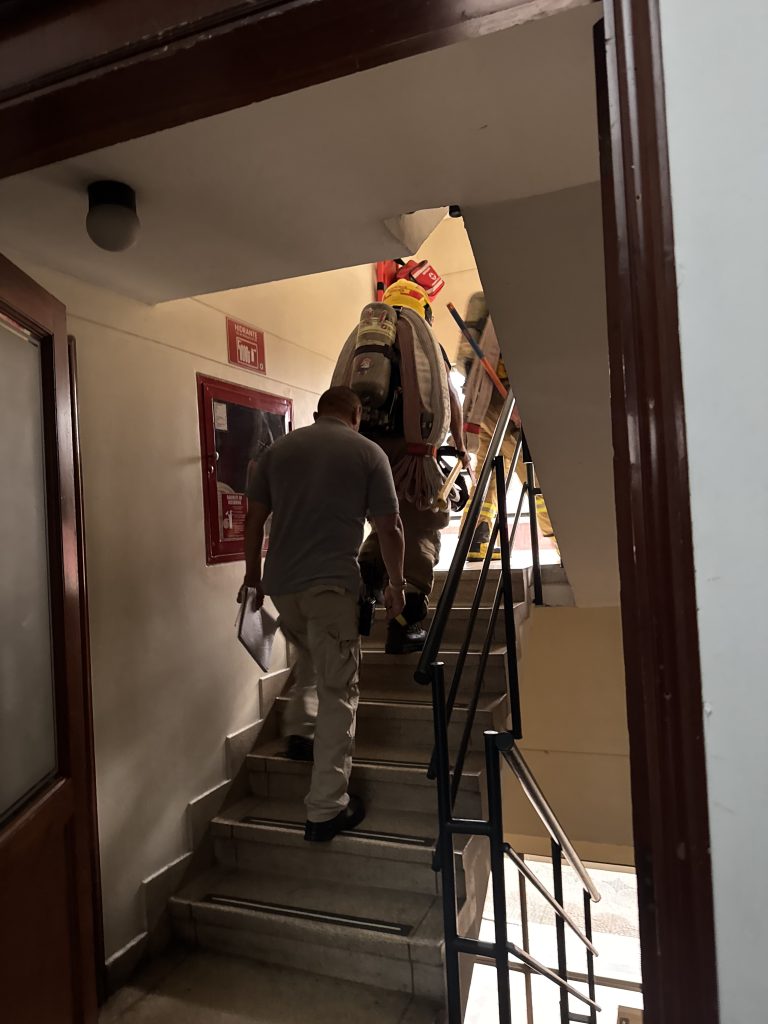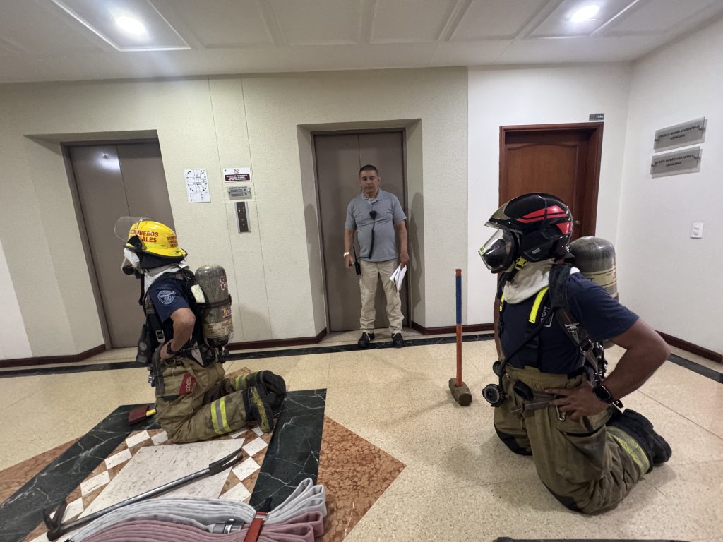 Capitán en el escalafón del Cuerpo Oficial de Bomberos de Pereira —un grado que no se alcanza por antigüedad, sino por formación y capacidad para liderar en la emergencia—, Reyes vive su doble vocación con orgullo. En los entrenamientos exige a su tropa subir los pisos más altos de un edificio con toda la indumentaria puesta, son más de 40 kilos encima, porque sabe que la emergencia real demanda siempre más que la práctica. Y en la universidad se emociona al entrar cada viernes al aula: “Me llena ver a los jóvenes ahí”, confiesa con el brillo de alguien que encontró en la docencia otra forma de salvar vidas.
