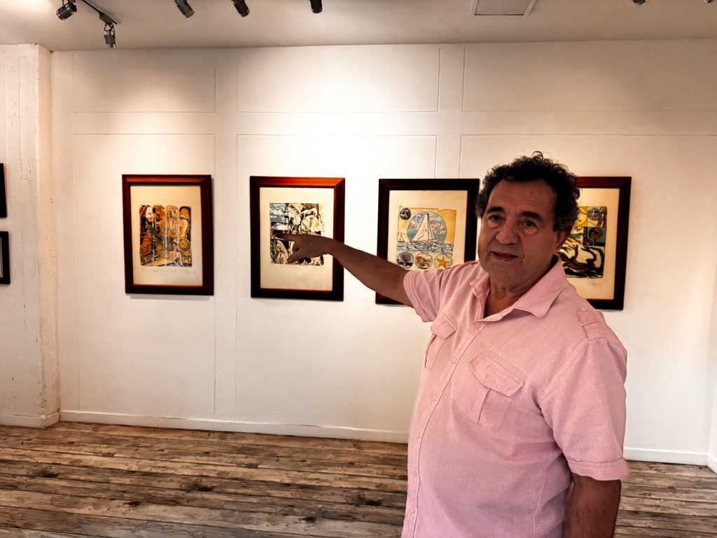 Su obra ha viajado y se ha nutrido de otras geografías. Francia y España fueron etapas de aprendizaje y confrontación. En Francia vivió siete meses, vendiendo pequeñas obras para sostenerse, y descubriendo que su destino no era ser extranjero. “Me di cuenta de que ese no era el mundo que yo quería”, recuerda. Más tarde, ya siendo profesor de la Universidad Tecnológica, cursó un máster en Obras Gráficas en el Centro Internacional de la Estampa Contemporánea de Galicia, España. Ese periodo lo llevó a recorrer Europa —Francia, Alemania, Hungría, Italia, Austria, Checoslovaquia— y nutrir su mirada. “Eso me permitió viajar por toda Europa durante esos tres meses. Me amplió la frontera mental”, dice con una sonrisa leve pero llena de picardía, como queriendo decir que los viajes son también interiores.