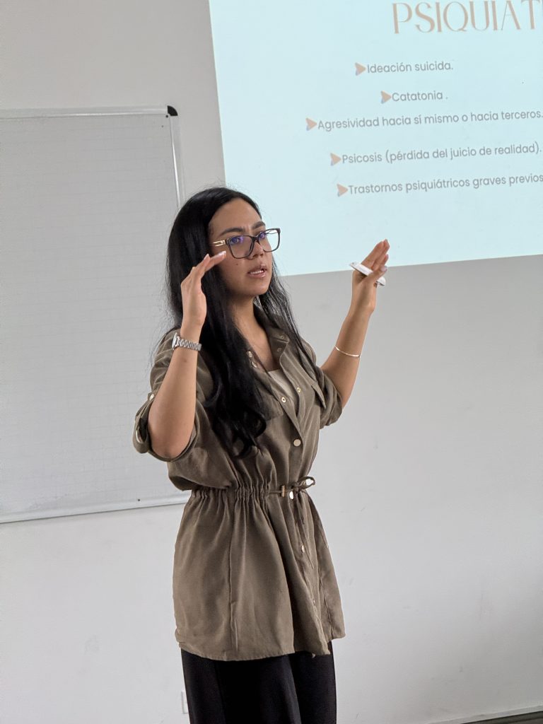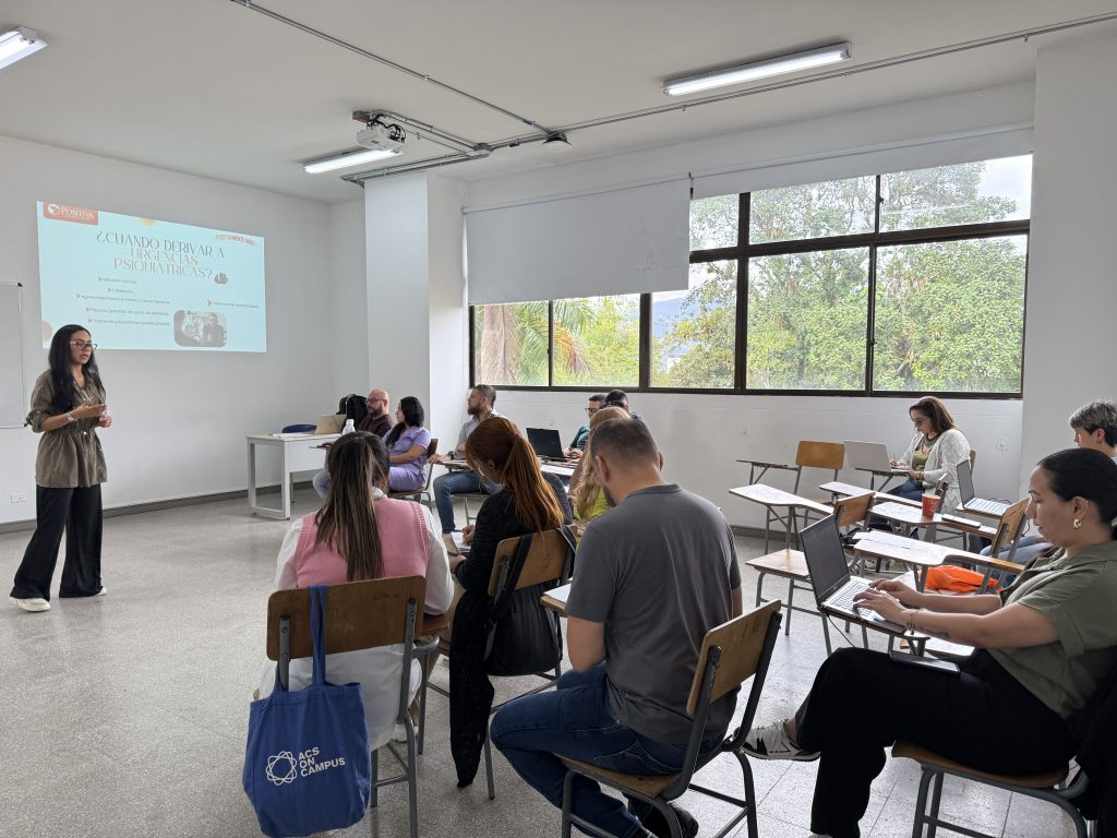 Durante la jornada se abordaron temas relacionados con los primeros auxilios psicológicos, los eventos traumáticos, el estrés postraumático y los trastornos de ansiedad, además de un énfasis en la autoobservación emocional, invitando a los participantes a reconocer sus propios límites antes de brindar acompañamiento a otros.