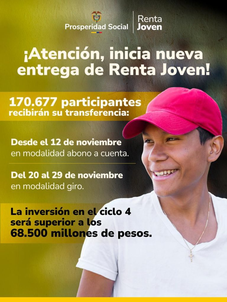 Pueden consultar la información en el siguiente link: https://prosperidadsocial.gov.co/Noticias/renta-joven-170-677-participantes-reciben-las-transferencias-monetarias-de-un-nuevo-ciclo/