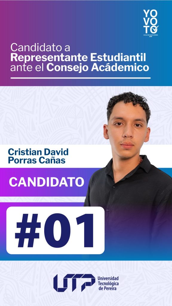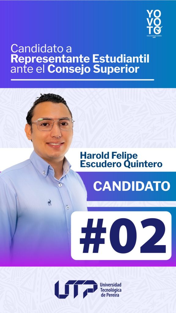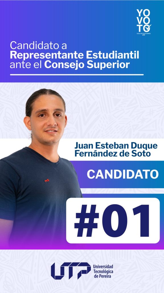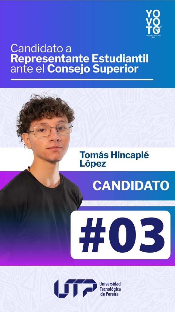 La Universidad Tecnológica de Pereira invita a todos los estudiantes activos de programas de pregrado y posgrado a participar en las elecciones de sus representantes estudiantiles, que se realizarán hoy, 13 de noviembre de 2025 desde las 8:00 horas hasta las 22:00 horas (hora Colombia).