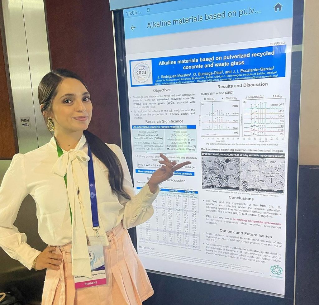 Hoy, Juliana cursa el último año del doctorado en Ciencias de la Ingeniería Metalúrgica y Cerámica, en el que ha desarrollado y presentado cinco patentes relacionadas con cementos alcalinos, alternativas más sostenibles al cemento Portland tradicional, responsable del 9% de las emisiones de CO₂ en el mundo. “Mi investigación busca aprovechar residuos industriales y urbanos para formular materiales de construcción más limpios, de bajo impacto ambiental y alto potencial de aplicación”, explica.
